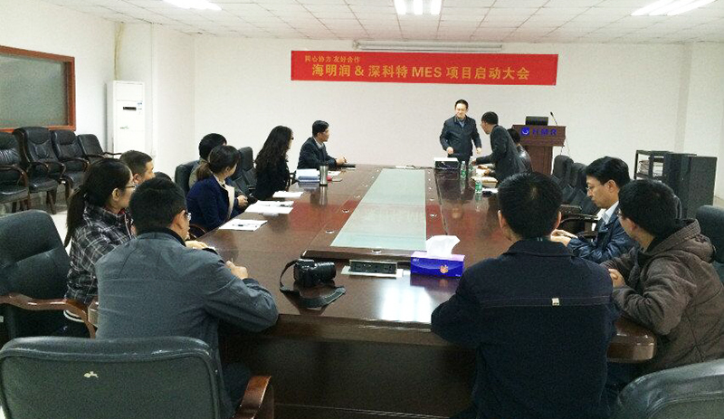 ? ? ? ?近日,海明潤LEAN MES項目啟動會在海明潤公司順利召開,雙方項目組成員參與了會議。會議包括深科特項目總監向與會人員介紹本次海明潤MES生產管理系統的總體規劃及實施方法。深科特總經理針對本次項目致辭,并做功能演示說明及討論溝通。