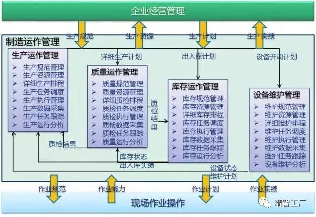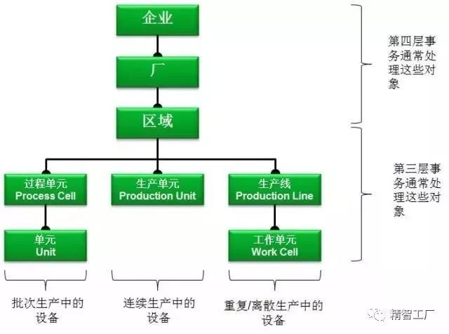 S95的制造企業(yè)模型,其中第三層事務(wù)就是指MES。具體來(lái)講,包括工廠下屬的車間、倉(cāng)儲(chǔ)、檢驗(yàn)室、維修間。